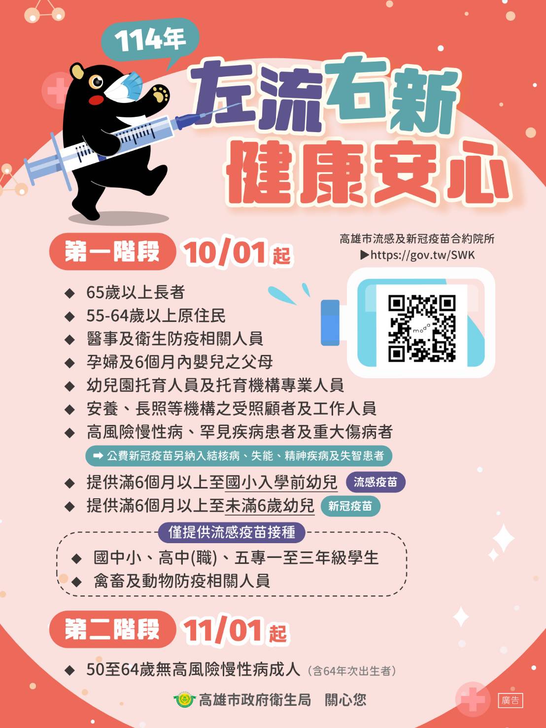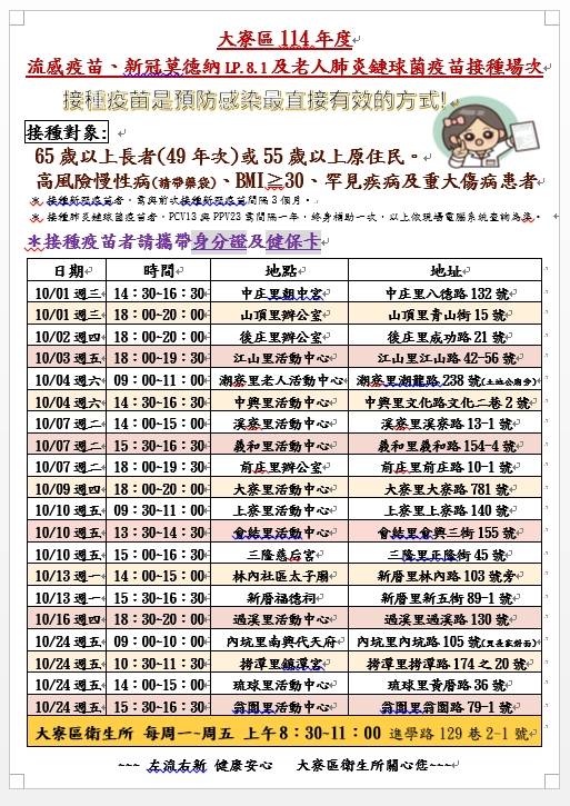 114年10月1日公費流感、新冠疫苗第一階段開打