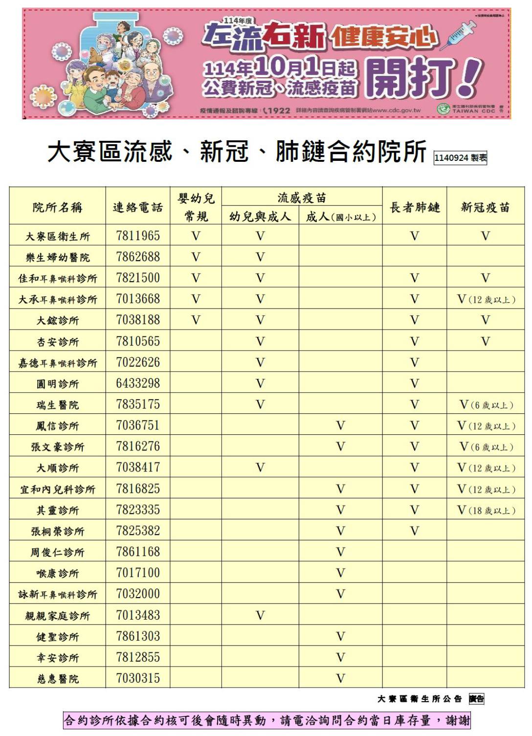 大寮區合約醫療院所及社區接種站詳見圖片